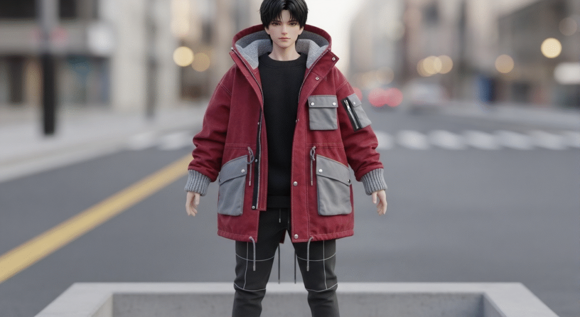 Crimson Frost Parka Set – Printable Streetwear Doll Clothing Pattern for Adult Anime-Style Figures