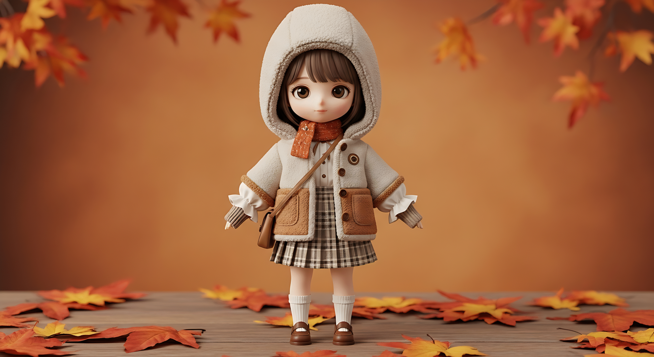 Bring your 3D anime-style doll to life with this original autumn-inspired outfit design. The Autumn Breeze Melody set includes a fleece hooded jacket, pleated skirt, and blouse—perfect for cozy Thanksgiving vibes. Download the free printable pattern and start sewing your own doll fashion masterpiece today.
