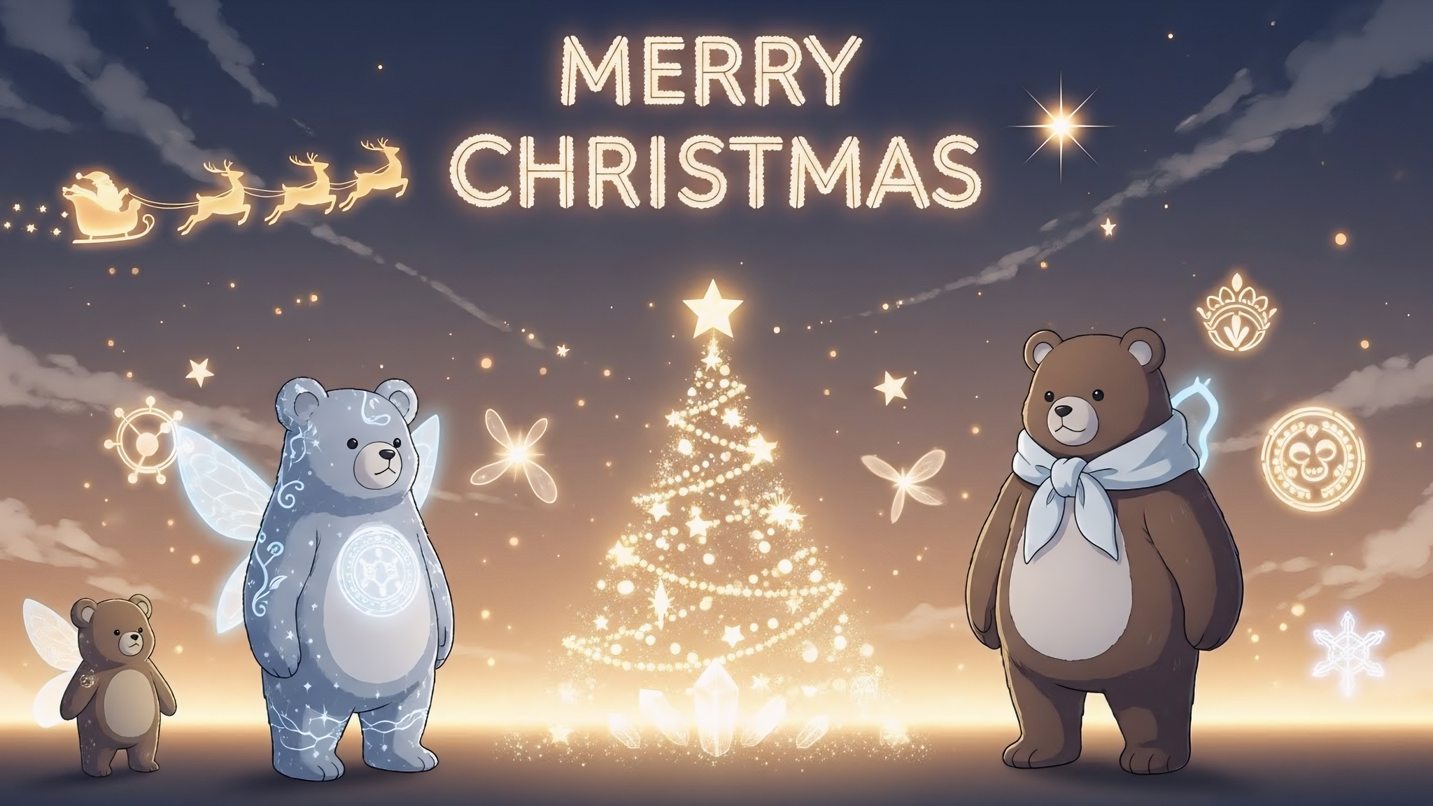 A light fantasy anime Christmas banner where bear guardians of mind and magic bring stability, warmth, and protection to a dream-astral holiday night—original, comforting, and perfect for kids’ photos. The Bear Guardian Christmas Banner presents Christmas as a calm and protected moment within a dreamlike astral star realm, watched over…