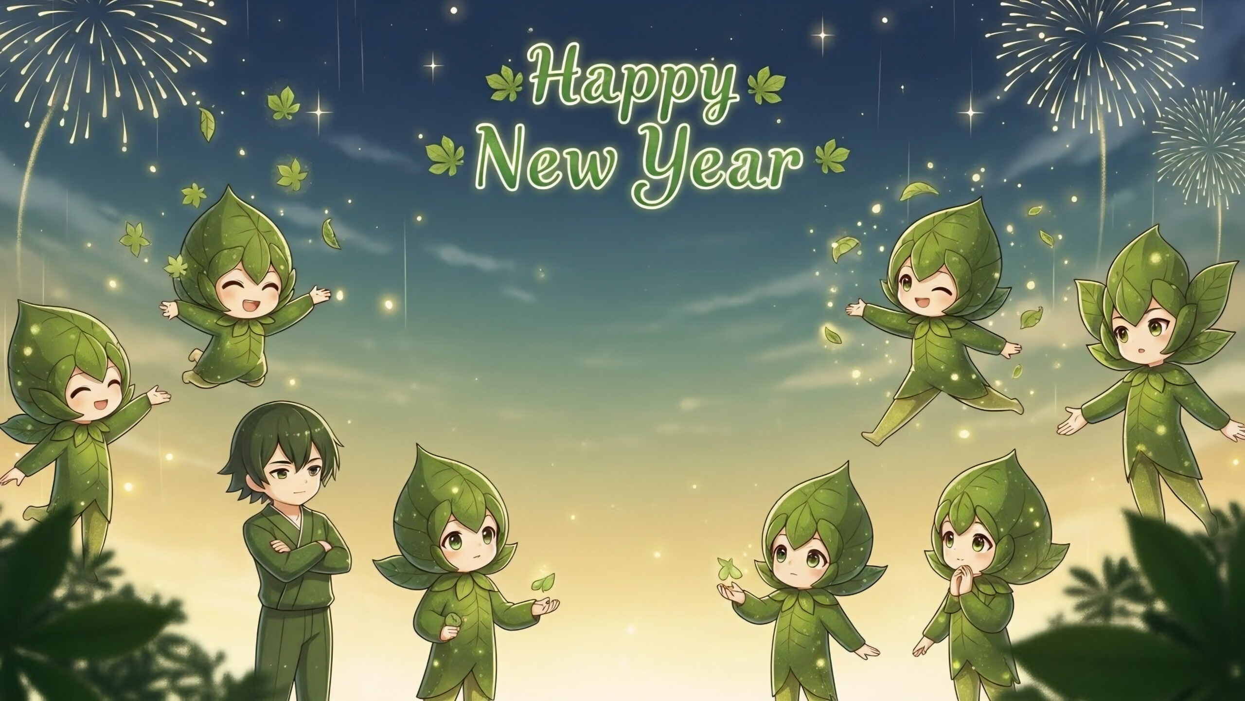 A light fantasy anime–style New Year banner featuring seven original humanoid leaf spirits celebrating renewal and hope—magical, gentle, and perfect for New Year photo moments. The Light Fantasy Anime Leaf Spirit New Year Banner is a warm, imaginative celebration backdrop inspired by original botanical fantasy characters. Designed with a gentle…