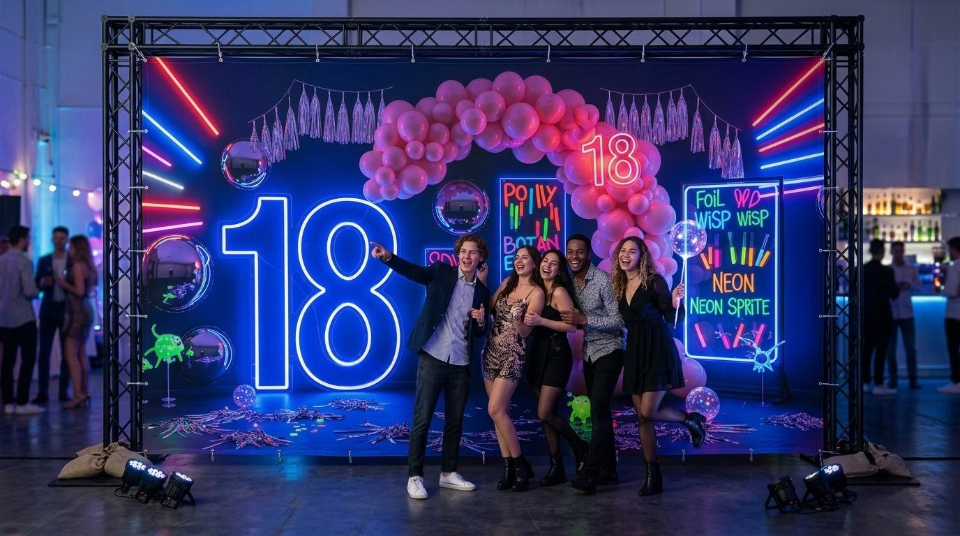 Neon Rebellion – 18th Birthday Party Wall with Hyper-Interactive Neon, DIY Graffiti, and Bubble Arch Layers for Teens