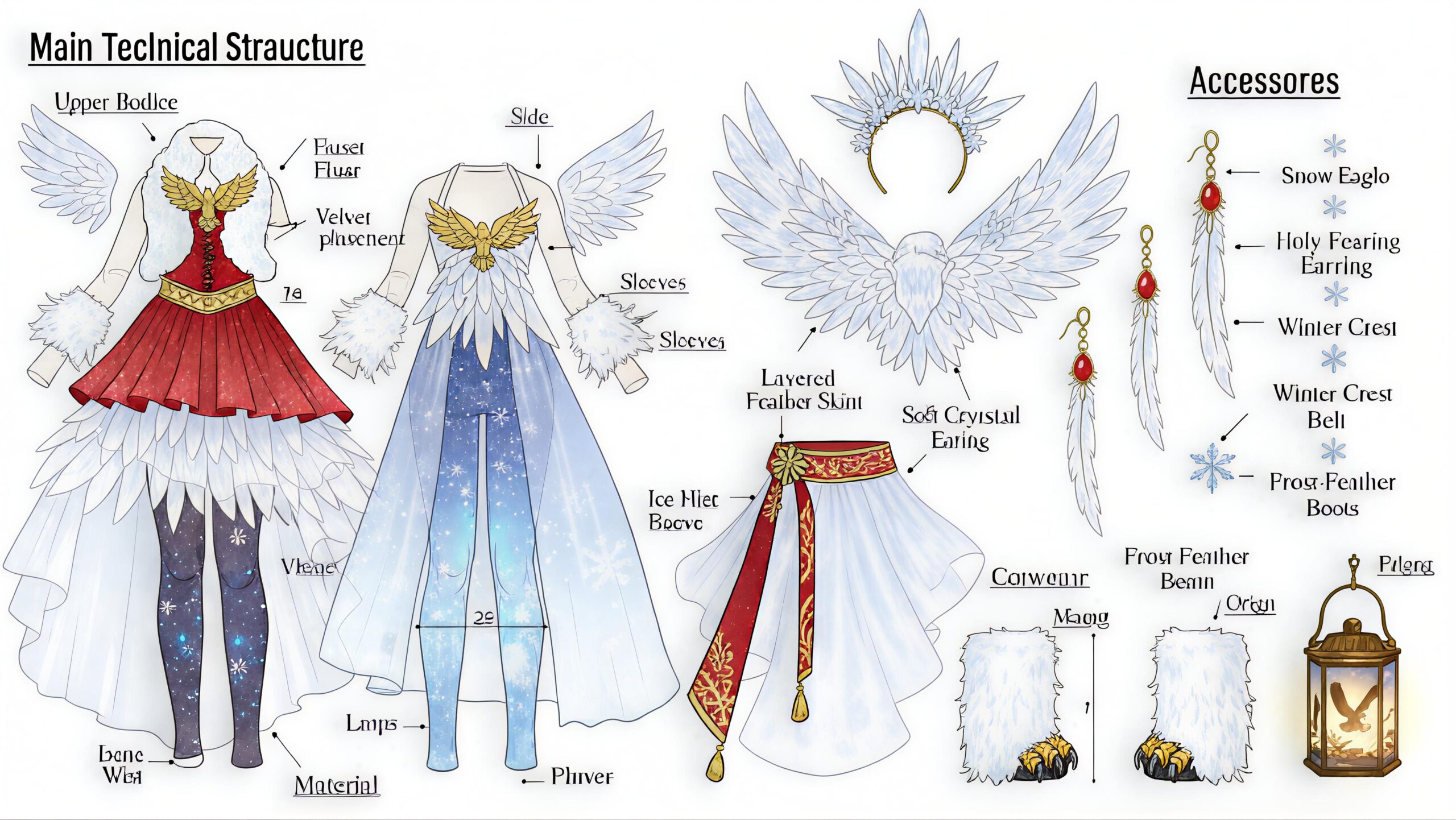 - Back Ornament: Detachable wing-shaped structure mixing snowflakes and stylized eagle feathers (not a cape).