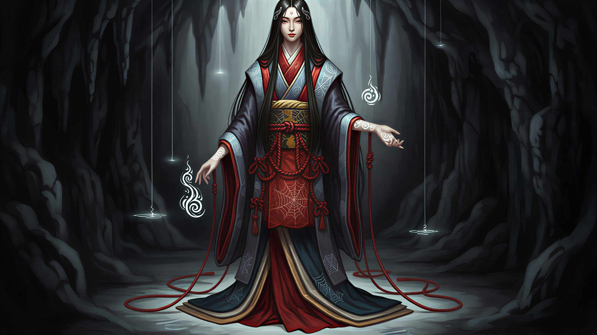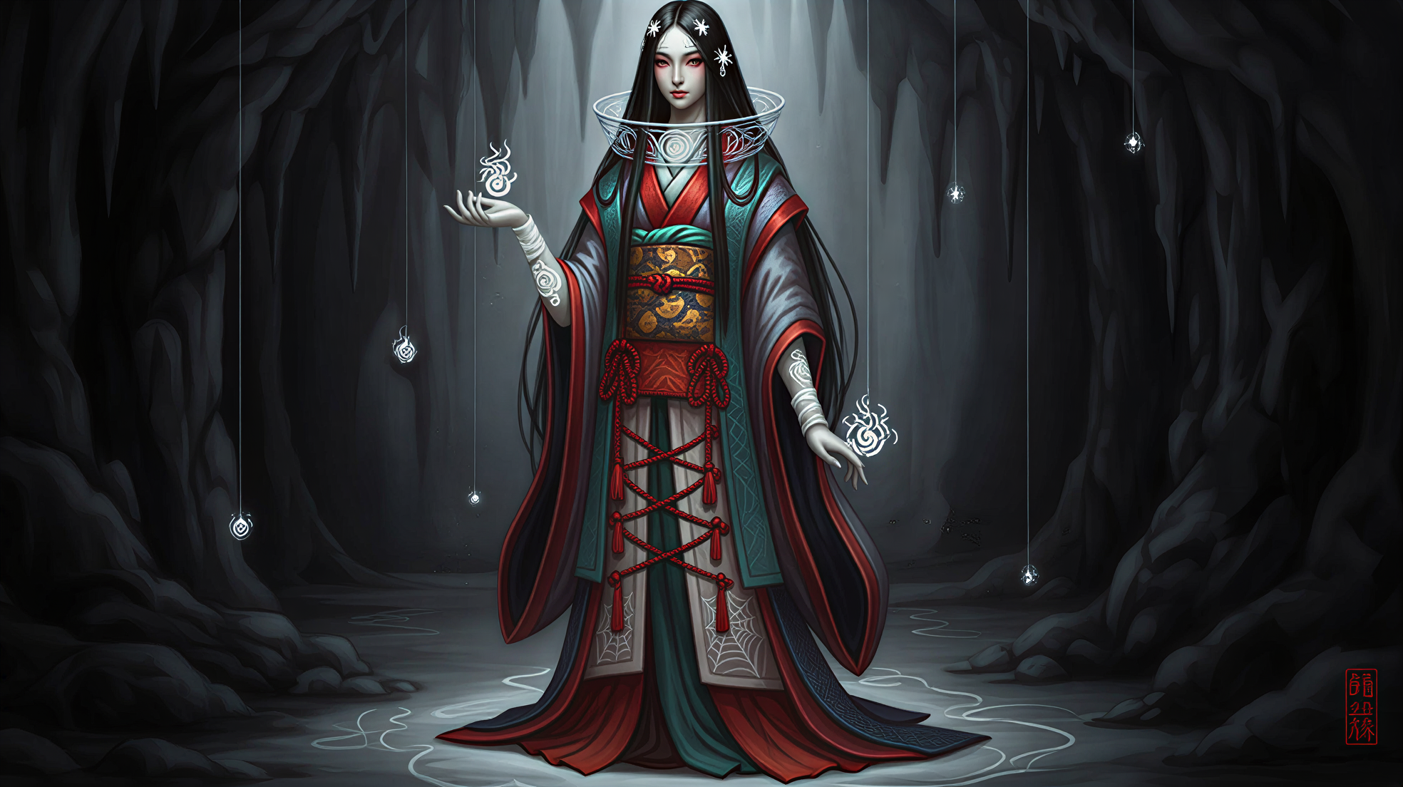 Deep within hidden caves where sunlight never reaches, legends speak of Tsuchigumo-hime, a maiden born of ancient spider spirits.