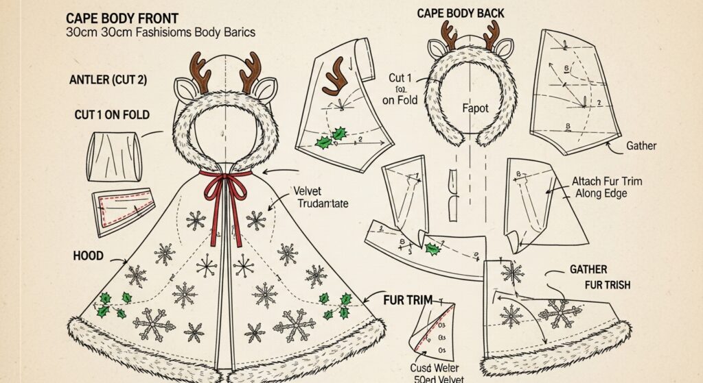 🎄 Handmade Christmas Velvet Reindeer Cape for Fashion Dolls