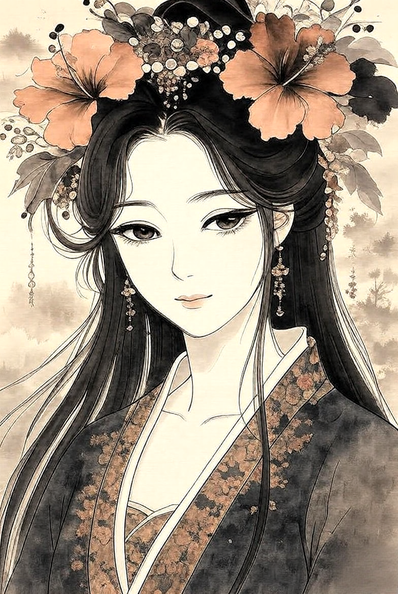 Hana-no-Kami, the Flower Spirit Maiden, is said to be the guardian of the earth’s blossoms, born from the first bloom of the season, woven into the fabric of the spring wind. She is nature’s delicate and eternal embodiment, a timeless figure whose grace is as soft as a petal and as enduring as the earth itself.