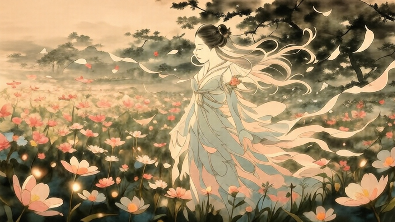 • Soft watercolor technique that enhances the ethereal glow of the moonlight and the spirit’s form.