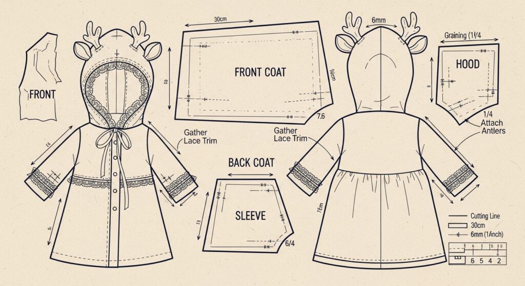 This winter, wrap your fashion doll in frosty charm! The Crystal Reindeer Coat is a luxurious handmade winter outfit designed for 30cm dolls, blending festive reindeer motifs with elegant feminine tailoring.