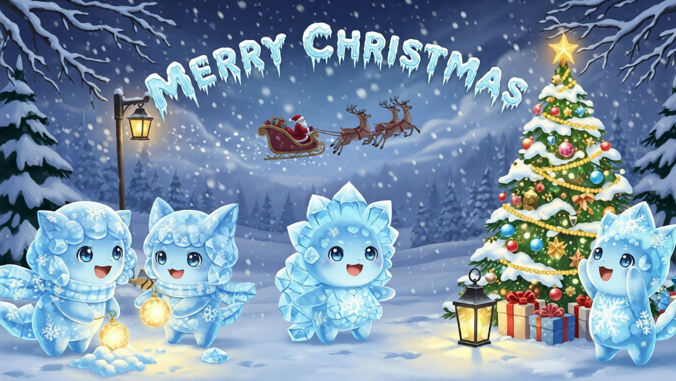 The Light Fantasy Anime Grass Creature Forest Celebration Banner blends the freshness of nature with the warmth of Christmas, creating a gentle winter forest scene filled with life.