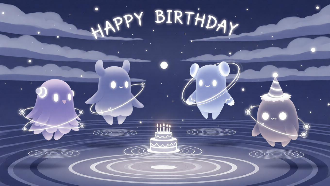 Standing before the banner feels like stepping into a calm anime dream—where imagination flows freely and birthdays glow with quiet magic.