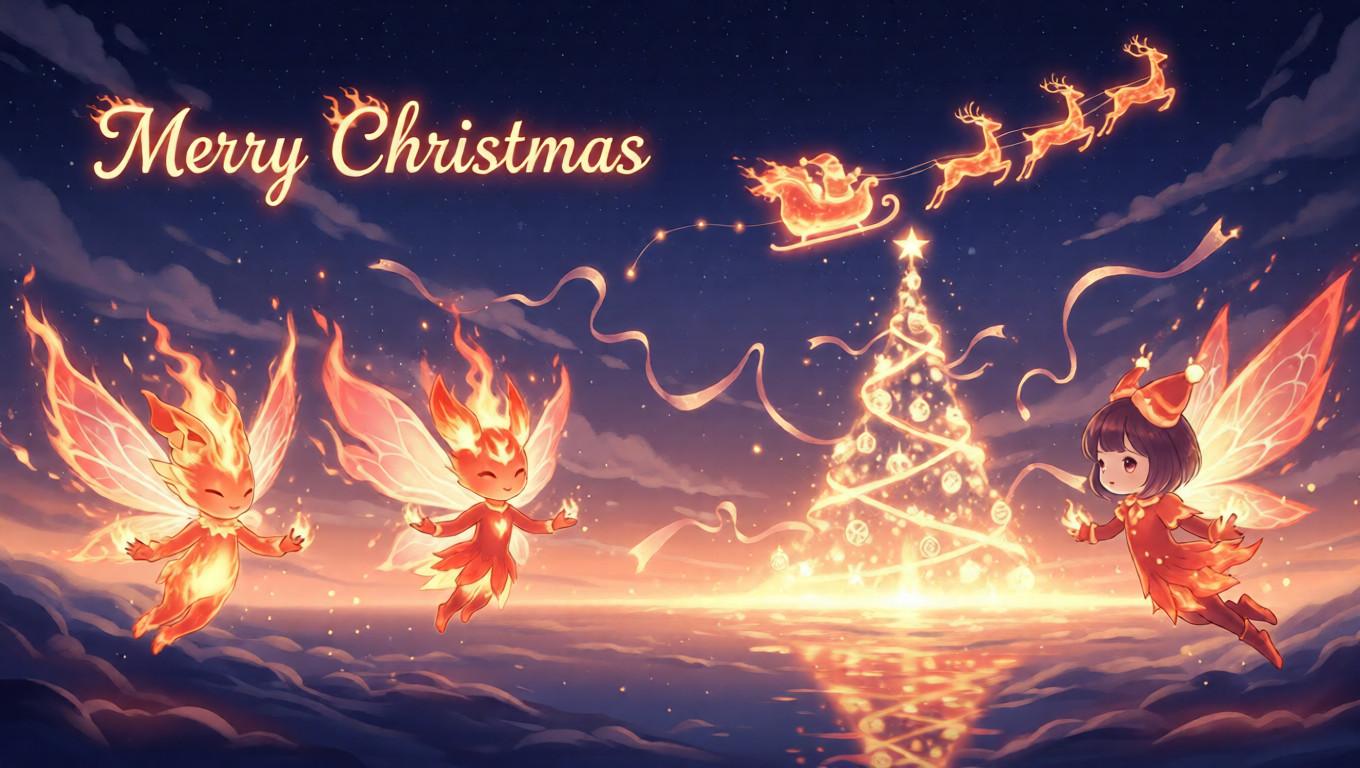 I also wanted to move beyond basic Christmas trees and generic Santa cutouts. The kids love soft fantasy and tiny sparkly details, so I blended gentle flame, psychic light ripple, and fairy elements into one cohesive scene. This wasn’t just a holiday backdrop; it was a tiny magical world for them to wander into while taking photos, making the whole experience fun instead of stressful. Plus, the soft color palette works way better for home photos, without washing out skin tones or clashing with cozy holiday pajamas.