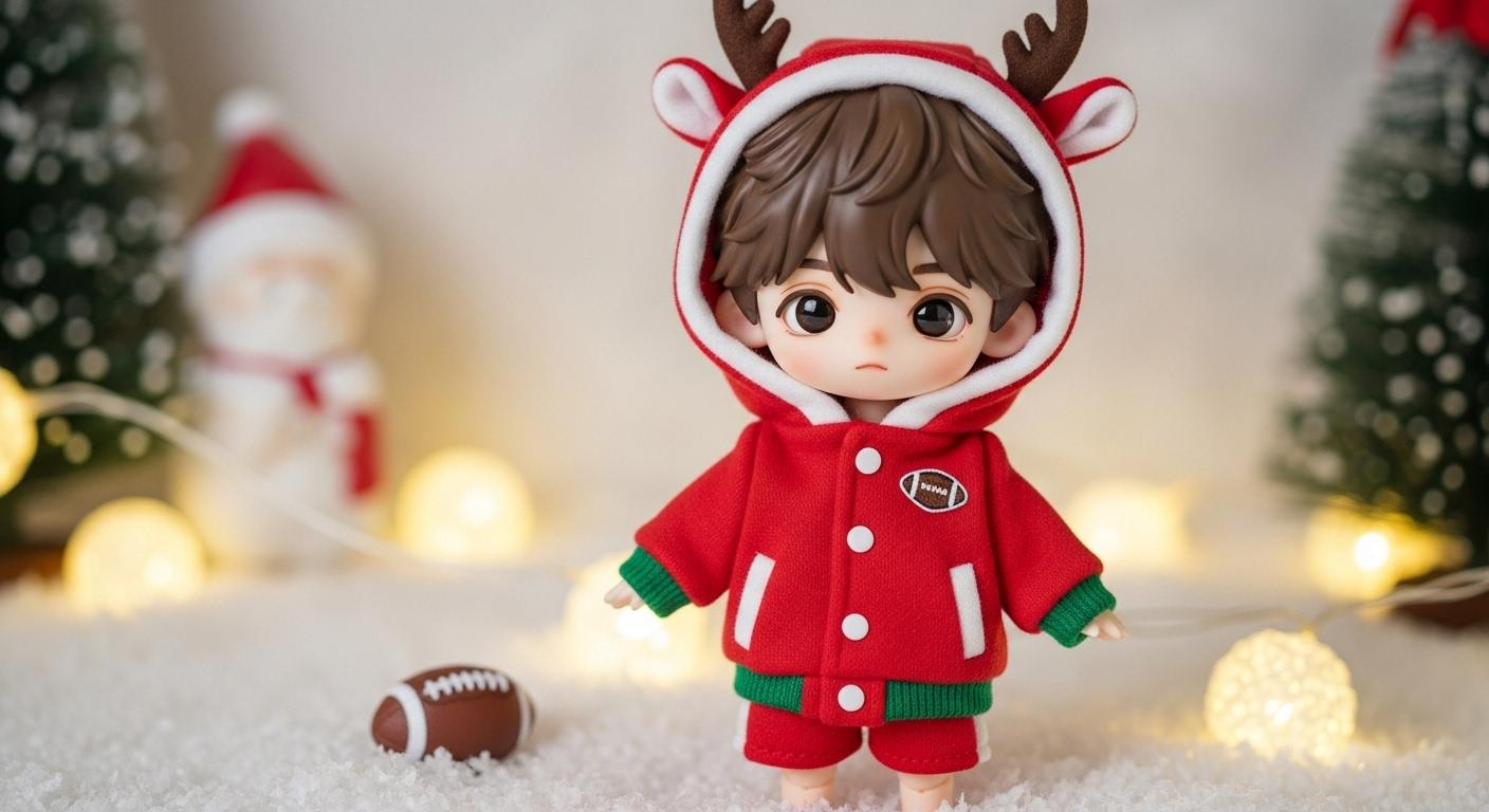 Bring festive cheer to your doll collection with the Tiny Touchdown Christmas outfit — a handmade sewing pattern designed for 20cm chibi-style boy dolls!
