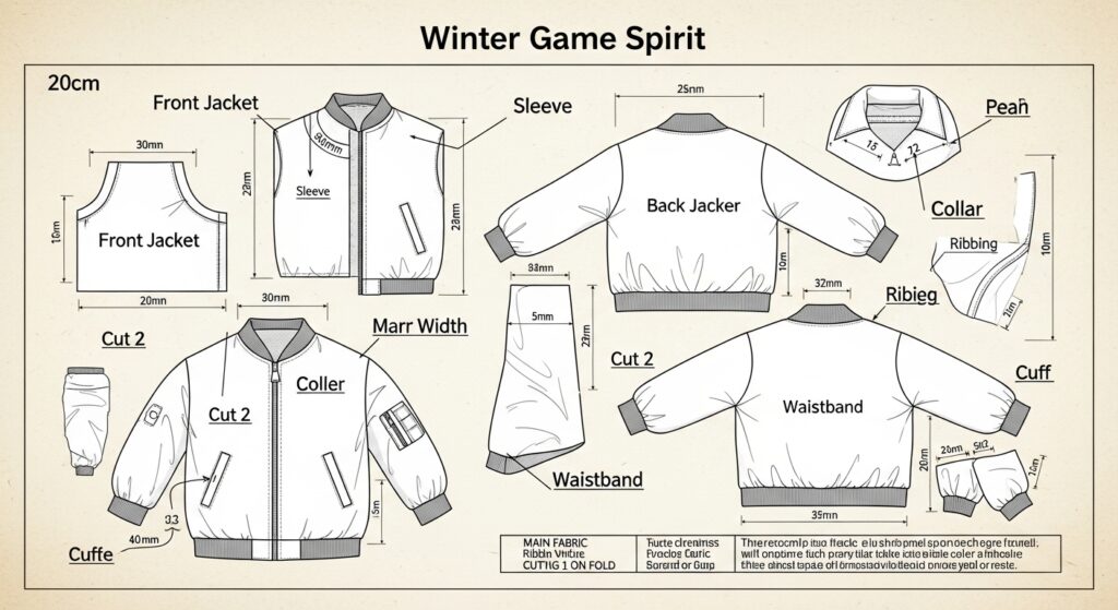 This free sewing pattern features a cozy bomber-style jacket with festive red-and-green accents, inspired by football culture but reimagined in a soft handmade aesthetic. Paired with matching jogger pants, it’s the perfect DIY project for modern collectors.