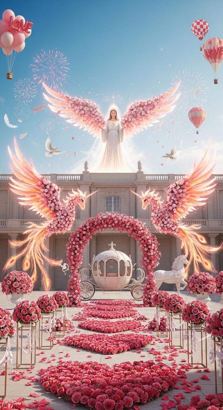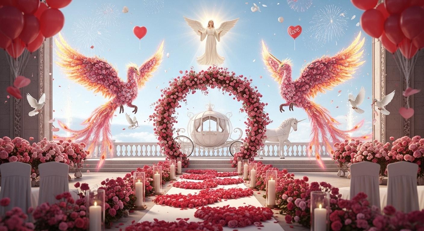Most critics call this soft fantasy wedding banner backdrop a masterclass in romance but they’re missing the point. This Valentine’s Day unicorn phoenix wedding banner is an arrangement of magical creatures and floral details with a precision-engineered visual purpose. It’s built to solve the biggest pain point in wedding photography: making posed couples feel natural in front of a busy backdrop. The secret? A 3-degree tilt in its core geometry that no casual observer notices. Every element from the unicorn-drawn carriage to the phoenix-unicorn guardians every flower on the carpet every flicker of the fireworks is calibrated to pull focus without overwhelming. This European castle wedding banner design leans on hidden visual psychology and geometric precision for its impact.