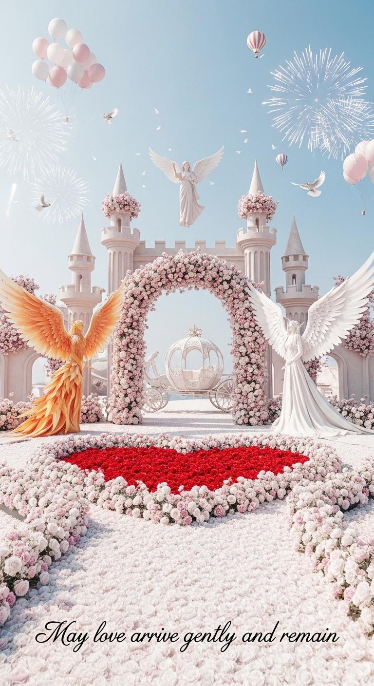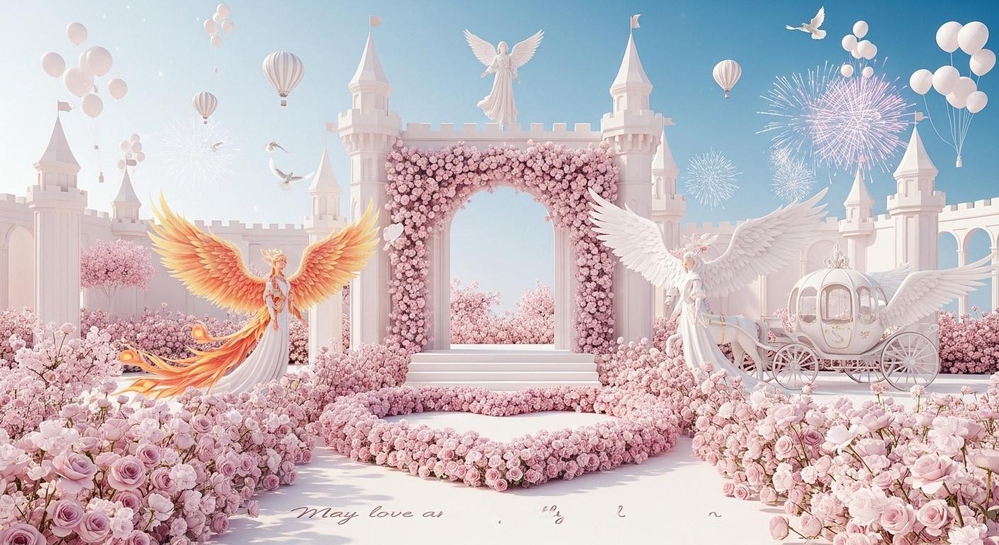 One comment on “Romantic White Wedding Banner Inspiration for Valentine’s Day Castle Photography with Floral Carpet and Angelic Fantasy Background”