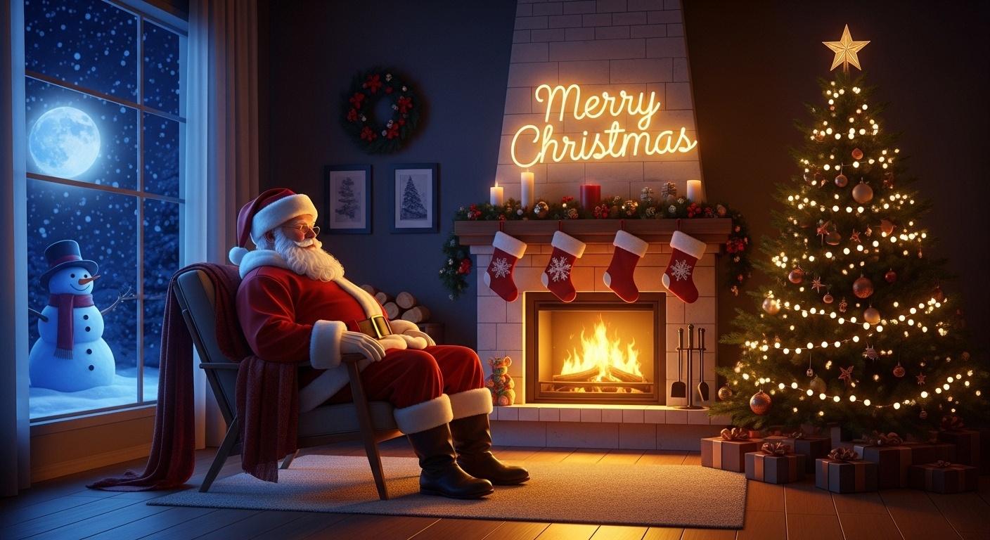 That observation shaped everything: Santa sits, the fire glows steadily, and the room feels lived-in rather than theatrical. The fantasy elements are present, but they serve comfort rather than spectacle.