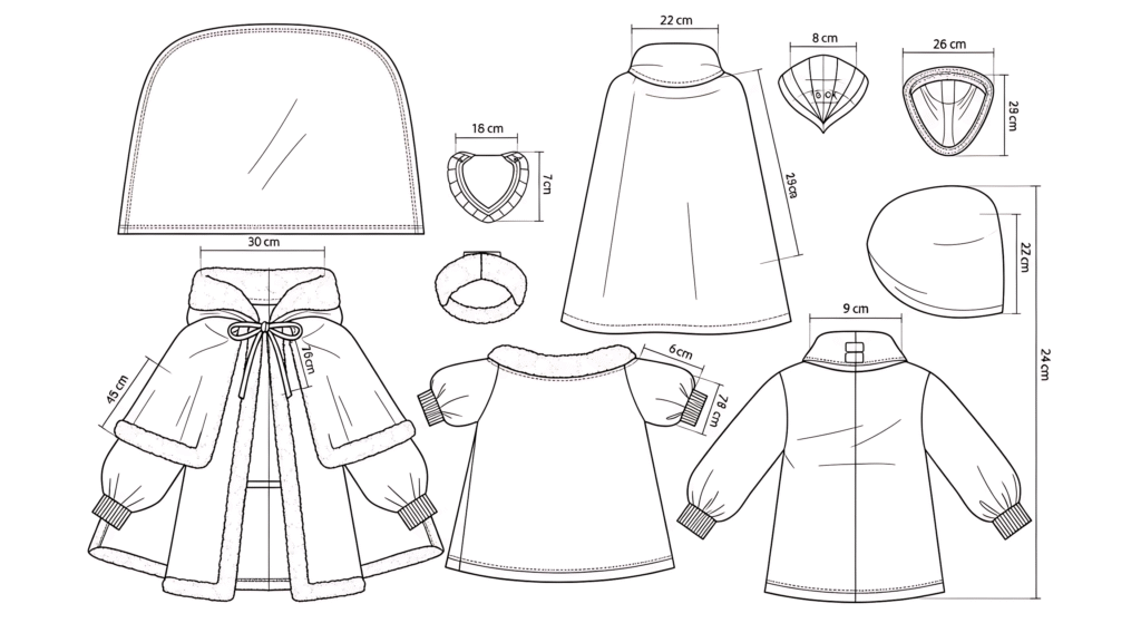 Made for 28–30cm chibi-proportion dolls, the set features a semi-long cloak with star-stitched edges, a structured winter tunic, and soft embroidered accents inspired by gentle lantern light.