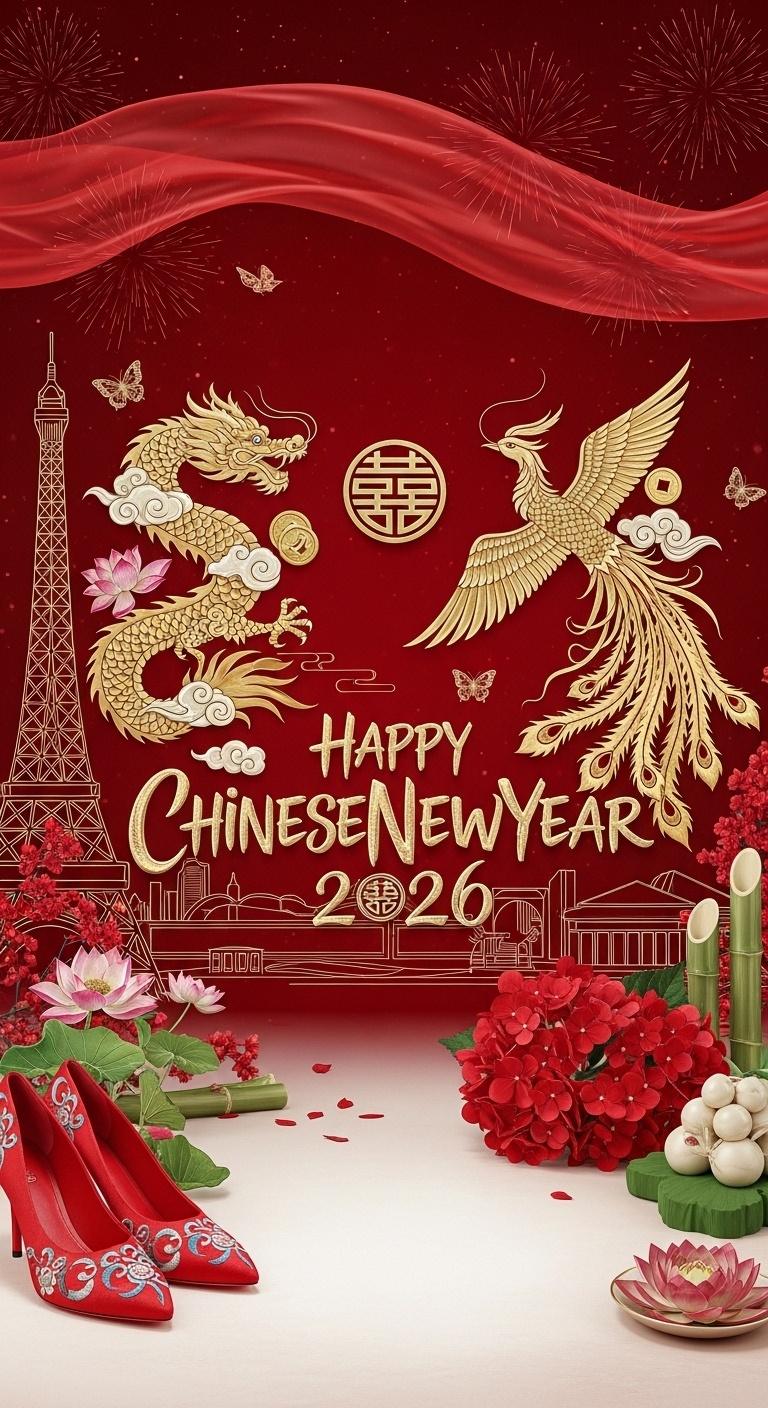 A First-Person Romantic Paris Chinese New Year Wedding Portrait Backdrop for 2026 Couples