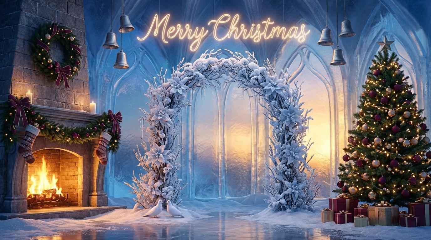 Luxury Ice-Palace Christmas Wedding Backdrop Layout – Practical Styling & Lighting for Photo Studios