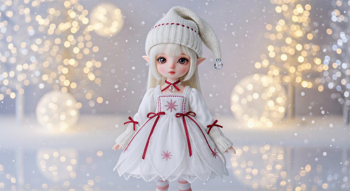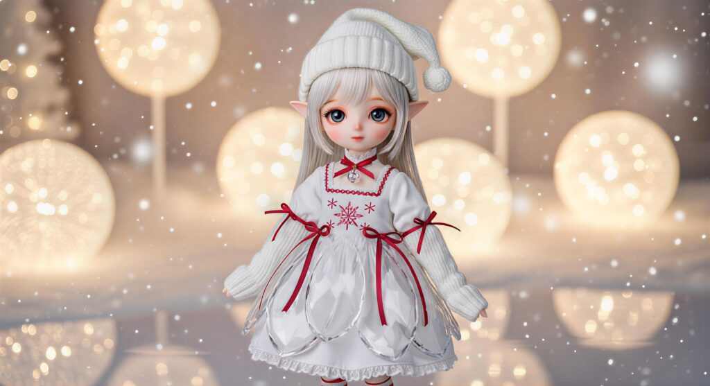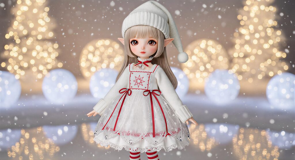 The Crystal Noel Elfin Dress brings a soft, luminous Christmas mood to 3D elf-style dolls, inspired by Japanese winter illuminations and the elegant sparkle of snowy nights.