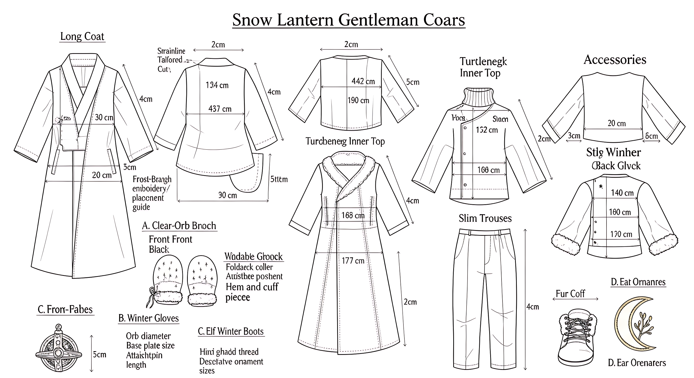 The Snow Lantern Gentleman Coat brings a refined Japanese-style winter aesthetic to life-size 3D male elf dolls.