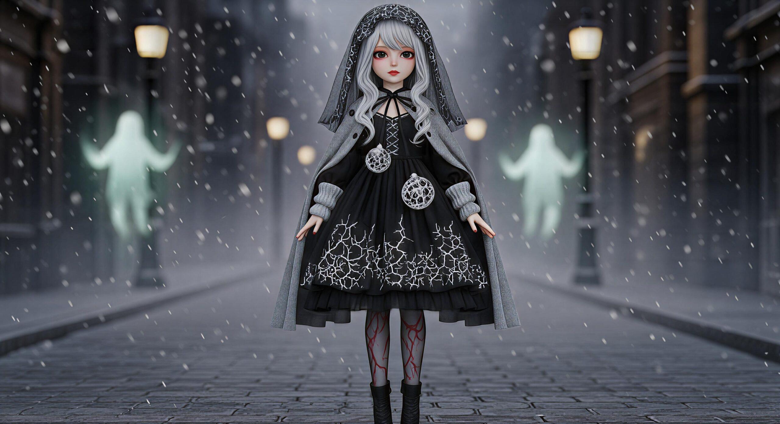 Silent Eve Mourning Dress – A Japanese Horror Christmas Outfit for 3D Female Dolls