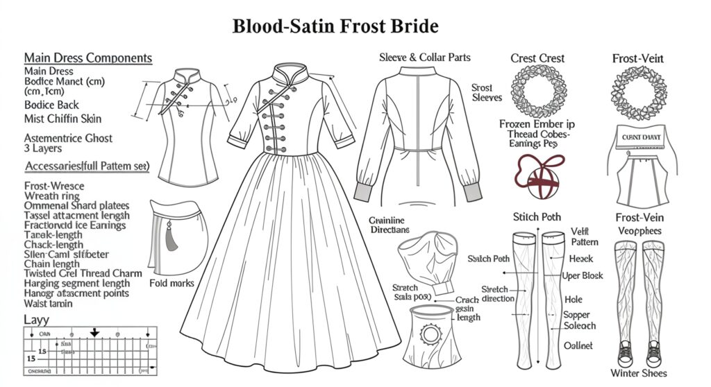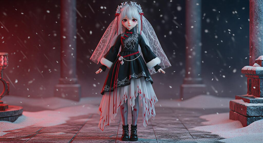 Blood-Satin Frost Bride Dress – A Dark Eastern Holiday Outfit for 3D Dolls