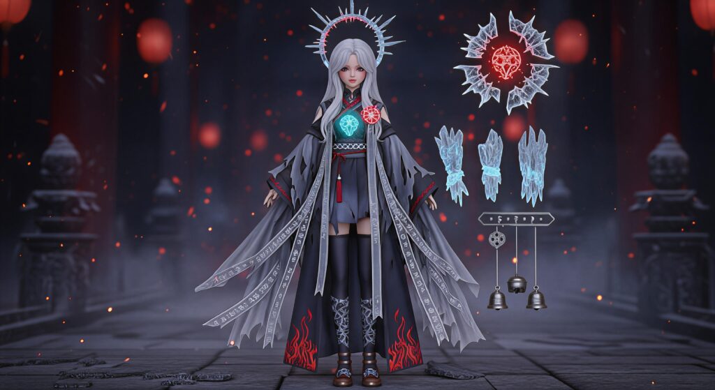 This final form combines apocalyptic Chinese ghost aesthetics, corrupted winter holiday motifs, and supreme ritual power, designed for 3D female dolls.