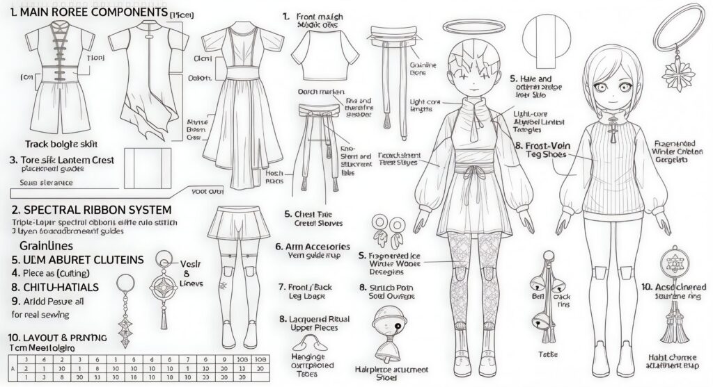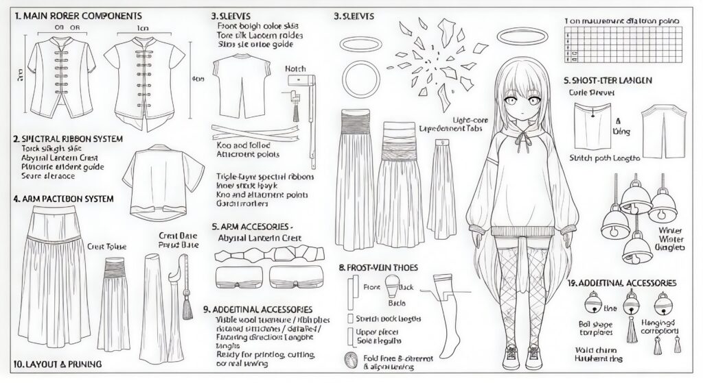 This pattern set provides full construction diagrams, accurate dimensions, accessory templates, and detailed sewing instructions. Perfect for collectors, gothic crafters, and dark holiday diorama creators seeking the ultimate horror-Chinese Christmas aesthetic.