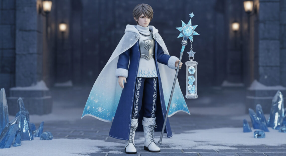 The Frostbound Herald outfit introduces an original Christmas-themed design for 3D male dolls, blending icy festival symbolism with a mysterious winter-guardian aesthetic.