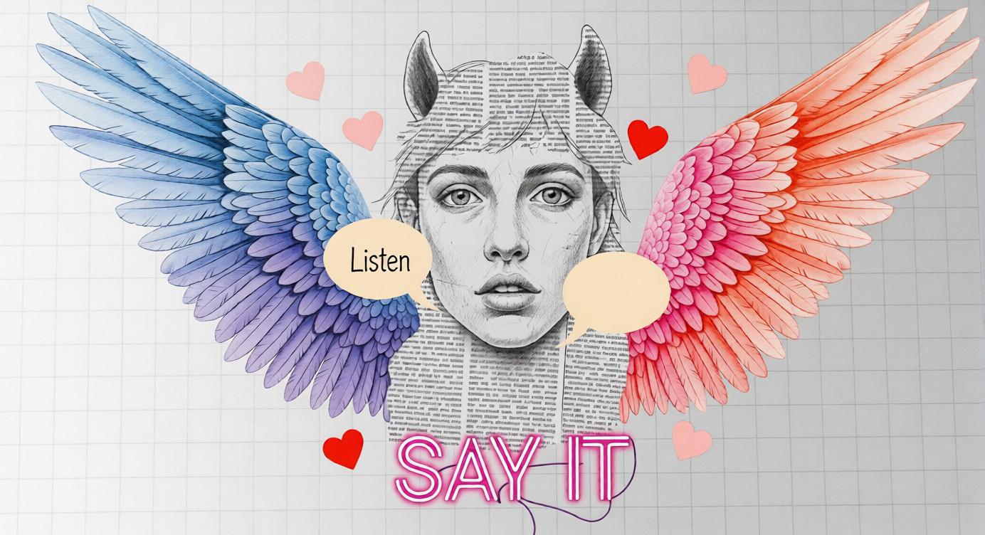 The symbolic meaning of the elements combined is simple, but powerful. The Pingpeng, with its horse body, human face, and bird wings, represents the merging of two lives—strength and loyalty (horse), communication and understanding (human face), and the freedom to grow together (bird wings). The gauze wings represent the delicate, fragile nature of love and communication—something that needs care and attention to thrive. The dialog bubbles represent open, honest conversation—the foundation of a strong, lasting marriage. The neon signs represent the warmth and vibrancy of love, a light that guides the couple through the messy parts of life. Together, these elements create a poster that’s more than just a decoration—it’s a symbol of what a good marriage should be: messy, honest, communicative, and full of love.