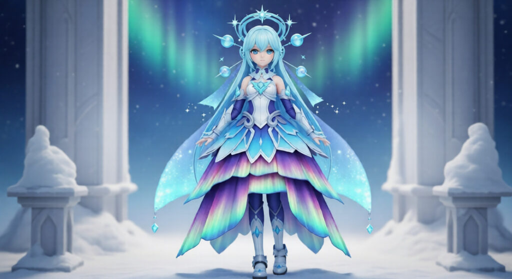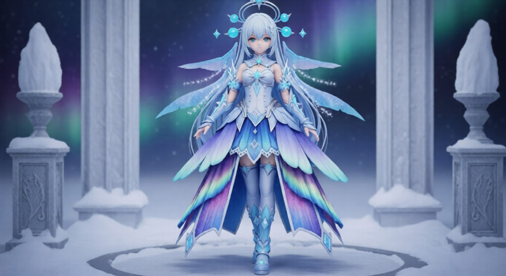 This form fuses snow deity purity, celestial Christmas radiance, and Japanese sky-realm divinity, creating a transcendent final winter-holiday aesthetic.