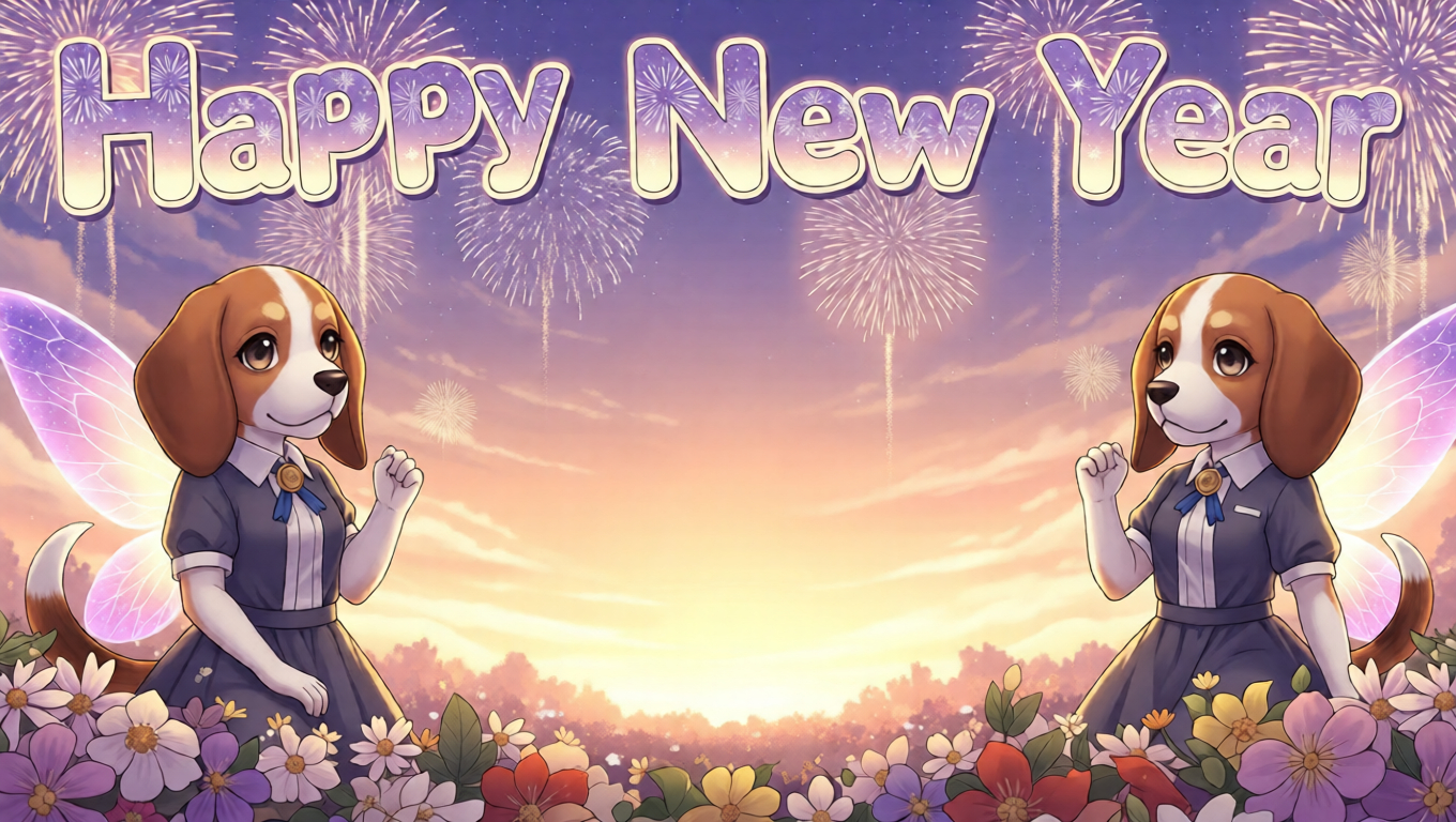 Happy New Year Light Fantasy Anime Beagle Spirit Creatures Banner – Original Psychic Fairy Dog Characters for Kids Photo Backdrops