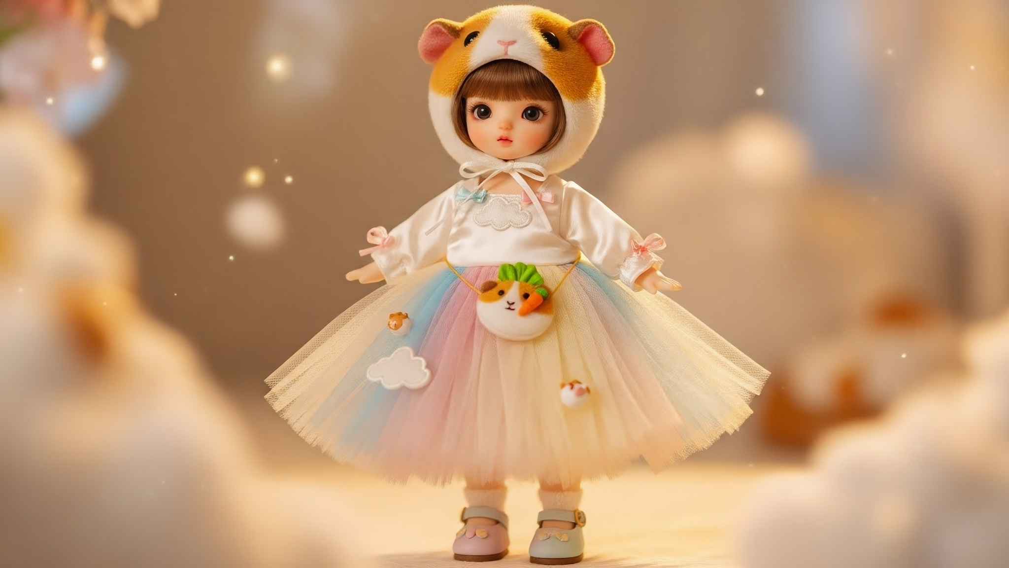The Cloud Nibble Tulle Dress is a thoughtfully designed 3D Q-style doll outfit that captures the calm, comforting charm of a cartoon guinea pig through original fashion language. Instead of referencing any existing character, the design draws inspiration from universally recognizable guinea pig traits—round cheeks, soft textures, gentle movements—and translates…