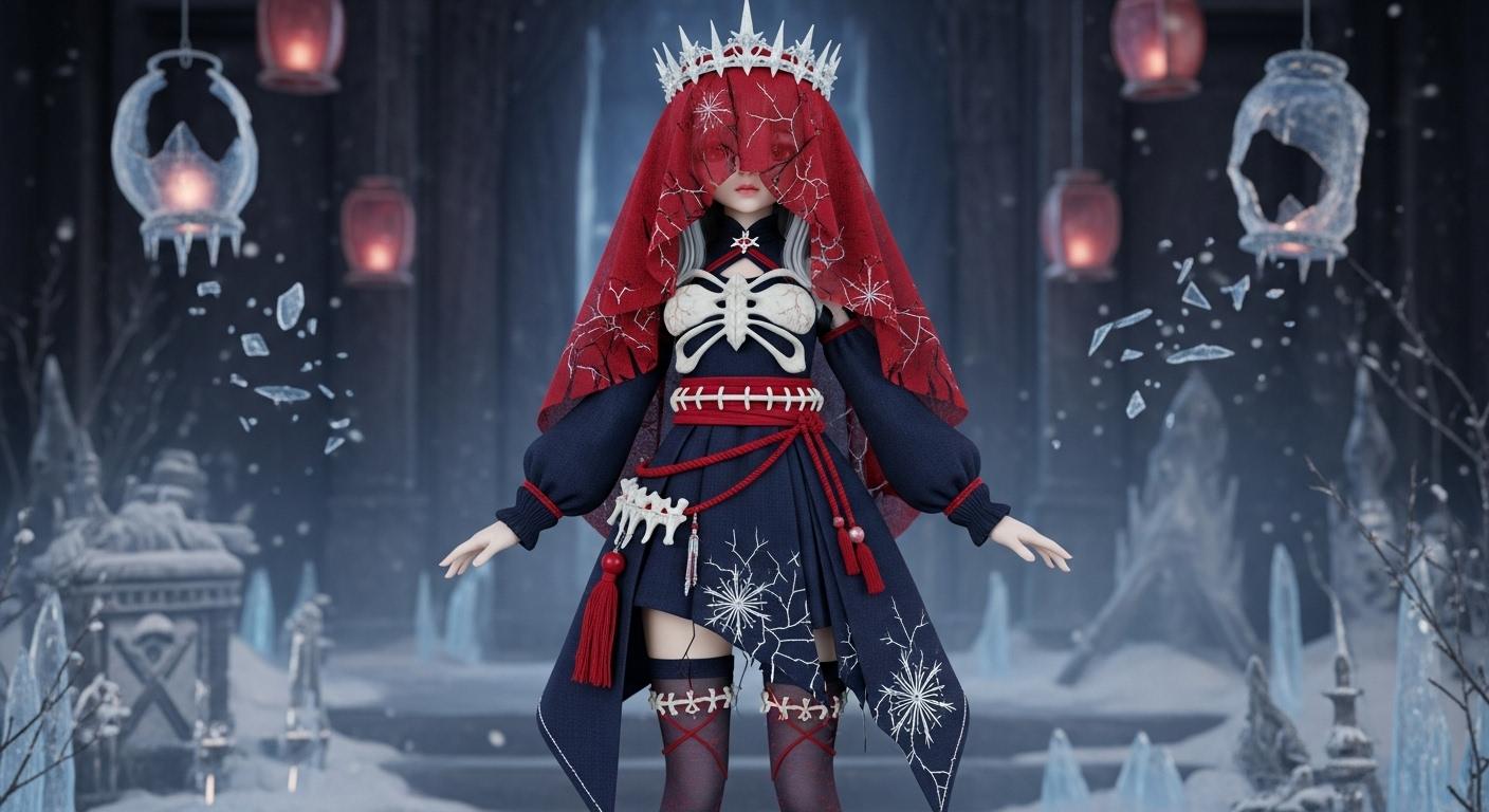 Unleash dark festive magic with our Frost Lantern Ritual Dress pattern for 28-30cm 3D dolls. This unique design blends Eastern ritual charm with Gothic Christmas intrigue, featuring frost-vein embroidery and a fractured red veil. Download the technical pattern and free lantern prop template today!