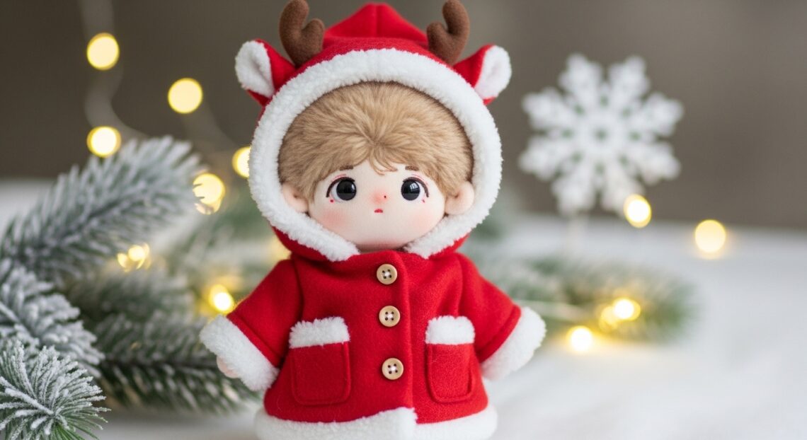 🦌 Handmade Christmas Reindeer Hooded Coat for 30cm Dolls Give your doll’s wardrobe a magical holiday upgrade! This handcrafted red wool coat is designed especially for 30cm plush or art dolls, featuring a cozy hood with adorable reindeer antlers and soft white fur trim that captures the warmth of Christmas.…