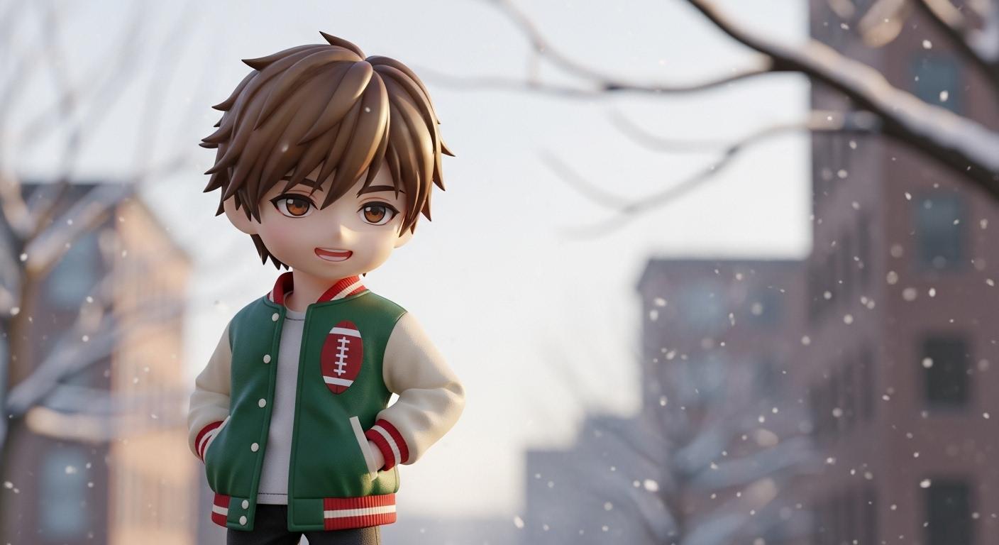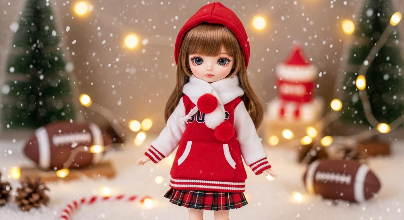 Free Download: “Winter Game Day Girl” Doll Outfit Pattern – Christmas Varsity Jacket & Pleated Skirt for 20cm Chibi Dolls