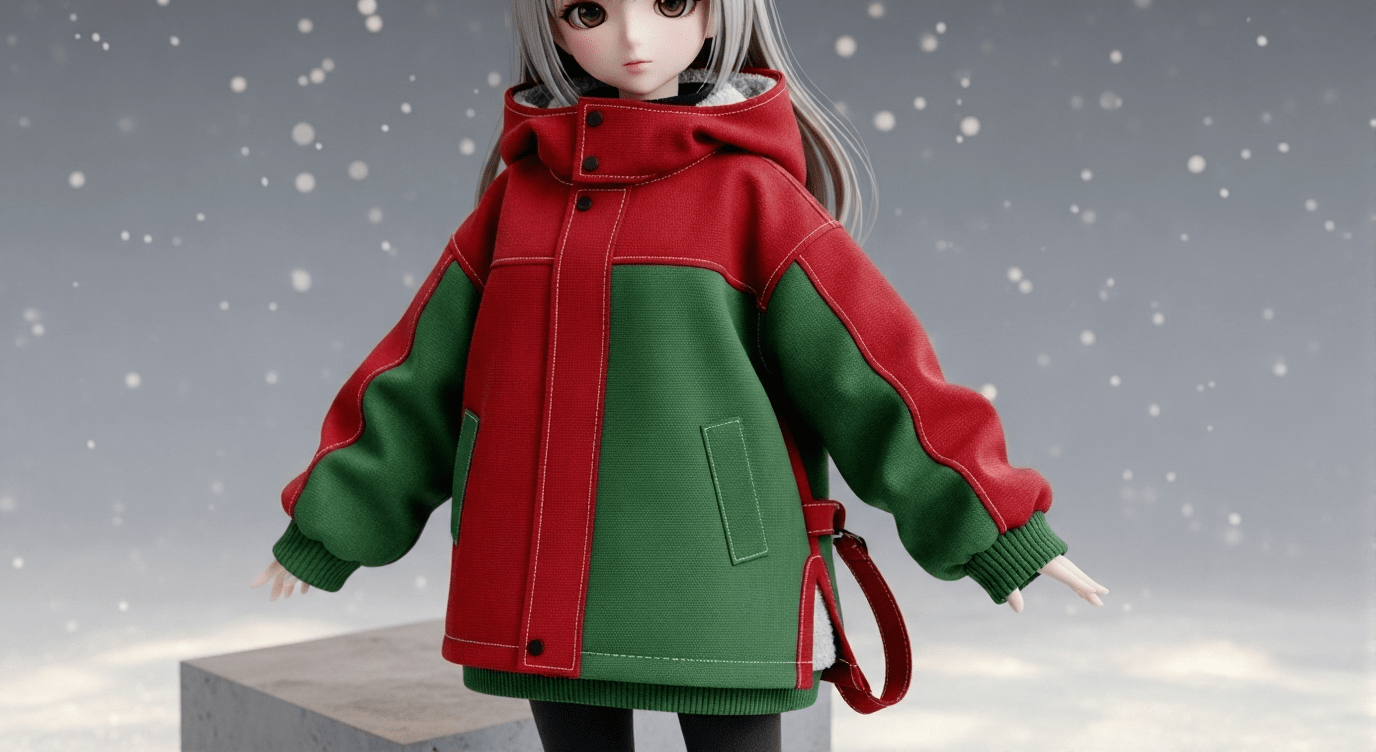 Free Pattern: Street-Style Christmas Jacket for 30cm Anime Doll – Urban Red & Green Design